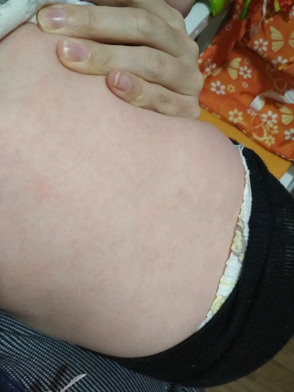 Тоже было. В 7 месяцев. Сначало температура 39 три дня. Потом такая же сыпь по всему телу. Прошла где то за три дня.