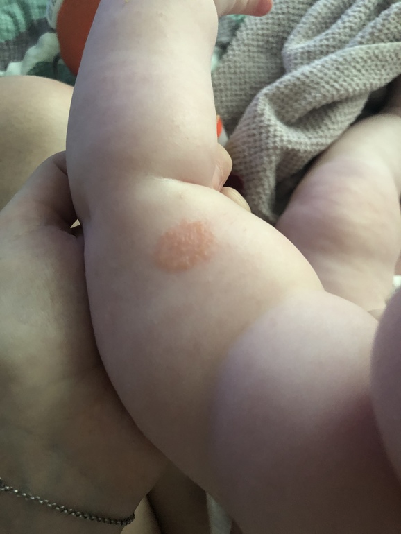 Похоже на аллергическое пятно..вы на груди?если да диету соблюдаете? какой прикорм даёте?