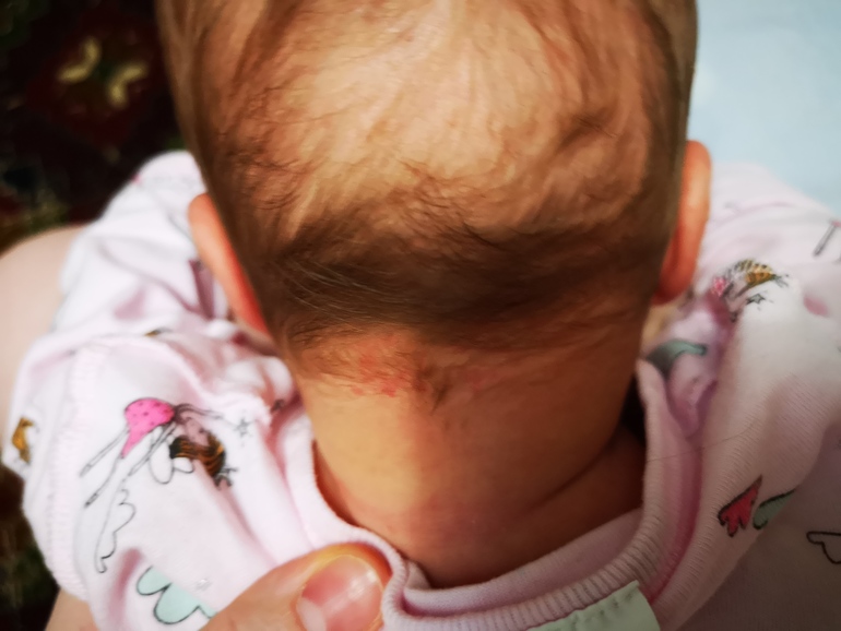 Высыпания на кожеДевочки, нам месяц, у кого были такие пятна на шее, что это? P. S. Ходили накануне к мануальному терапевту, ничего нам не вправлял, расслаблял шейные мышцы, может быть от этого? Если их потереть они сильнее краснеют.
