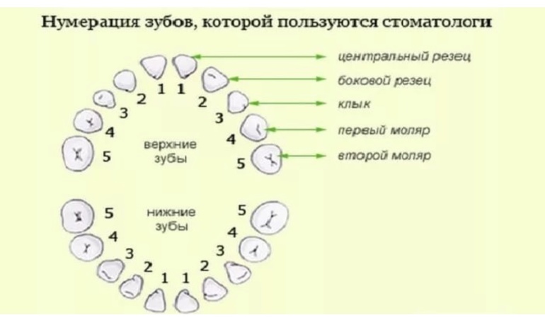 На вашей картинке не номера зубов, а порядок их прорезывания. Имеется в виду, что нижние боковые резцы прорезываются четвертыми по счету. Боковые резцы и на нижней, и на верхней челюсти - это «двойки»