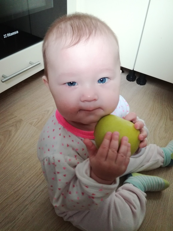 Наша педиатр говорит, что один глаз мой, а другой папин-папа у нас с узким разрезом глаз