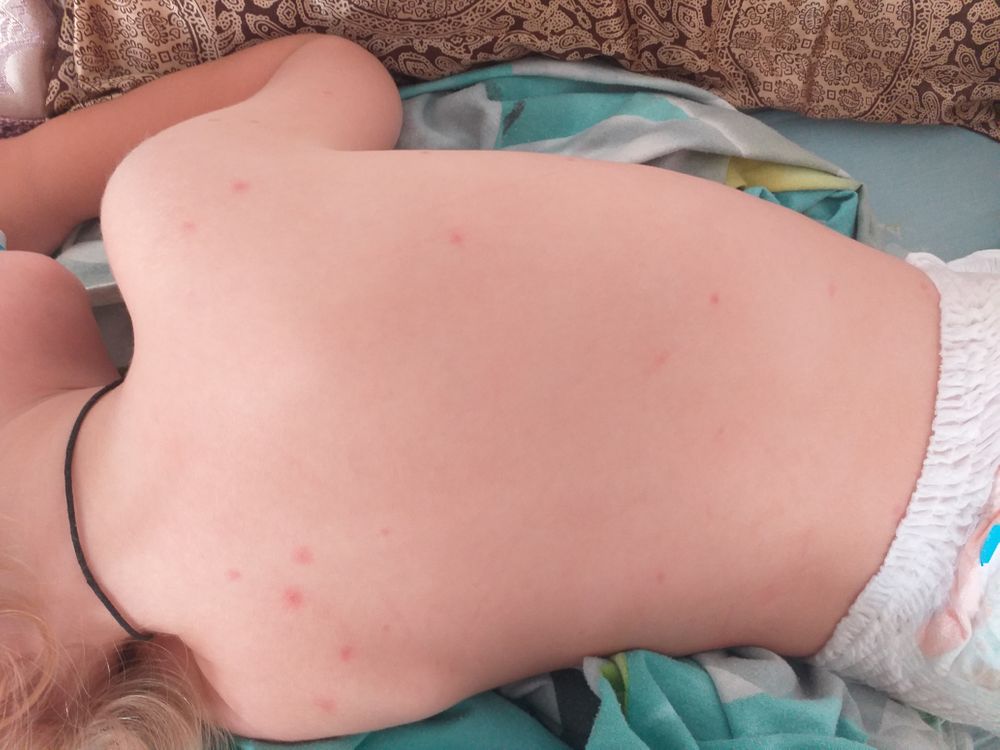 Если спит в одном памперсе, то укусы. Хотя сейчас такие комары, что прокусывает одежду на раз. На даче сейчас море комаров, такого не видела ни разу в жизни. У детей сплошь все тело искусано