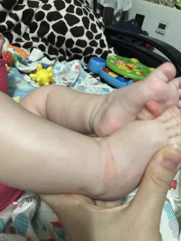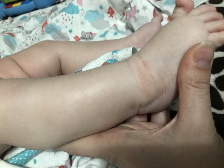 Доче 6 месяцев. С рождения кожа на ножках была слегка суховатая, не знаю как точно объяснить местоположение, в районе щиколотки. Сначала увлажняли молочком, потом был массаж с кокосовым маслом и эта сухость ушла. Мы уже и забыли про неё. Но она вернулась, ещё и покраснела.