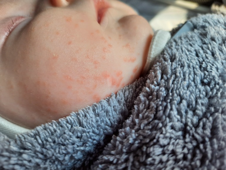 АллергияВсем здравствуйте! Моей дочке 4 месяца, всегда была беспроблемная кожа и тут неделю назад начался этот кошмар. Начали выходить мелкие прыщики на попе и лице и шее в складках, я думая что это потничка, начала купать еще чаще, с ромашкой, с марганцовкой. Но ничего не прошло, а только разрасталось, все стало шершавое. Начала давать фенистил, мажу кремом липобейз и бепантеном. Естесственно записалась к педиатру-аллергологу, но он только в четверг😫 Я уже вся измучилась, не знаю как помочь до этого времени. Все думаю от чего такое?? Нарушала диету, съев чипсы, шоколадный торт самодельный, ела арбуз и дыню, выпила пол бокала вина. Но я и раньше позволяла иногда что нибудь такое, реакции не было никогда. Сейчас на гречке, но прочла что и на нее может быть аллергия🤦♀️ За несколько дней до этого делали 2й ротатек. Может быть на это? И как лечат аллергию у таких маленьких? Кровь на аллергены читала не показательна. У кого такое было? Как долго проходило? Выявили ли причину? Фото сыпи прилагаю