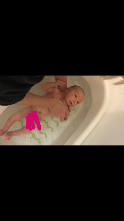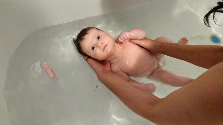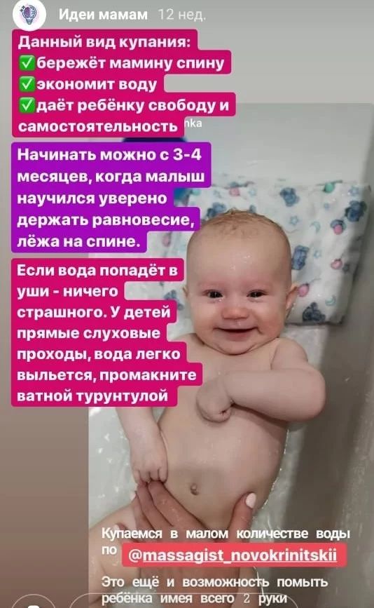 До 3 месяцев тоже как только не корячилась с купание и с горкой и без, но все равно было не удобно. Потом в инстаграме увидела вот такой способ купания-очень удобно, ребенок никуда не скатывается, руки свободны, удобно мыть ребёнка, заодно и руки-ноги тренируем в воде бултыханием, ещё на животе так лежит в воде, естественно в таком случае подстраховываю рукой под шеей.