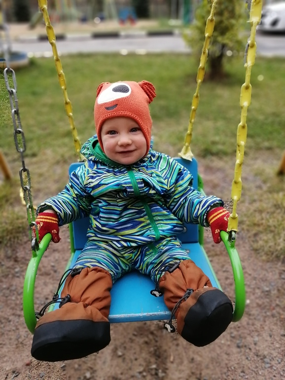 Это было вчера, погода +2 утром. В таком виде ползает по площадке. Завтра ещё не знаю как утром одеть.