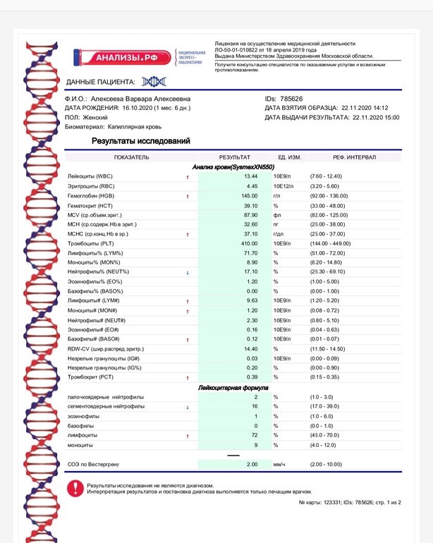 Анализ крови ребенку 1 месяц кто понимает?