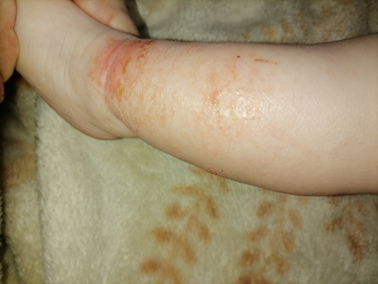 Атопический дерматит это, вероятно, довольно тяжелый, но площадь невелика зато. Ребенок ползает?