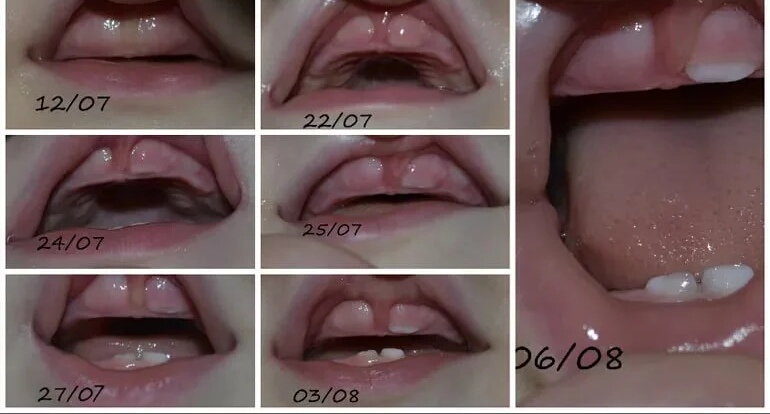 И мне кажется, что похоже на стоматит. Зубы обычно сначала снизу растут, потом верхние