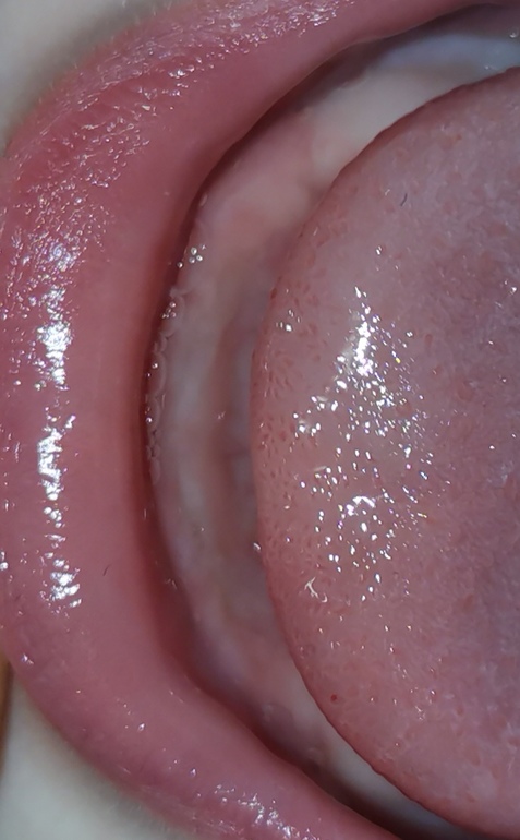 Зубки и проблемы во время прорезыванияПомимо нудежа бесконечного и оров во сне детенок больно укусил меня за подбородок. Заглянуть по человечески в рот не могу, там либо пальцы по десне гуляют, либо ногой занято. Дала свой палец пожевать- чтото слегка слегка кольнуло, но вполне может быть мне кажется. Вот на фото в тех двех лунках чтото белеется. Они там же появляются?