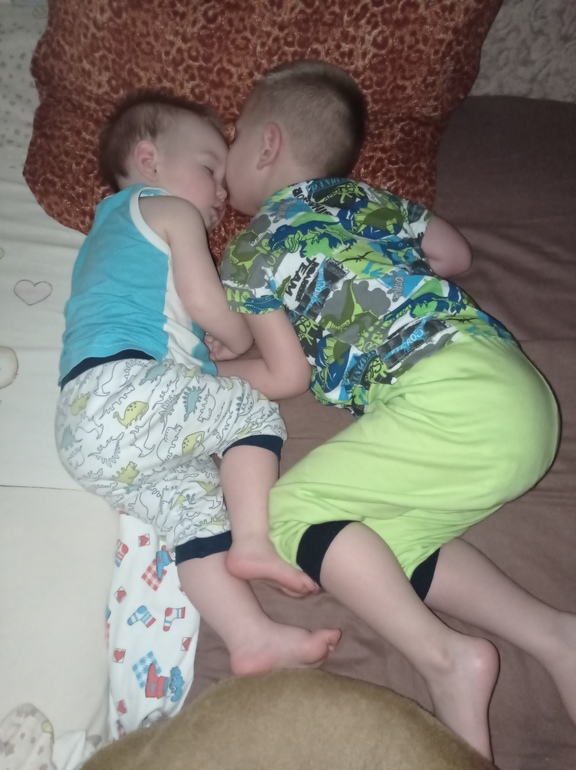 И их конечно накрываю, но ночью оба одеяло скидывают. Не парюсь. Ни разу не пеленала. В 2 месяца разве что вместо штанов с футболкой был комбез-человечек х/б зимой (я батареи не включаю), а летом песочник или бодик с коротким рукавом у мелкого, у старшего летом шорты с футболкой. Днём трусы/памперс и футболка.