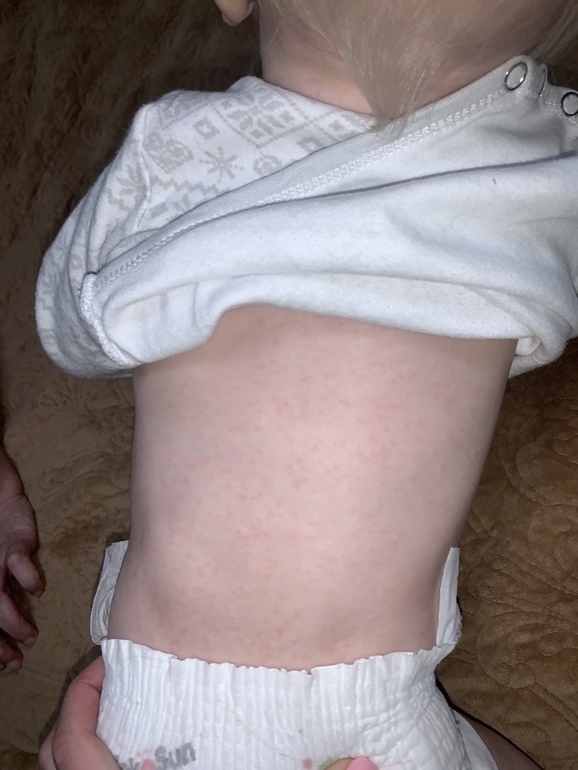 Зависит от температуры-если она была до сыпи дня три, то это розеола. Если ее нет или она одновременно с сыпью, то краснуха.