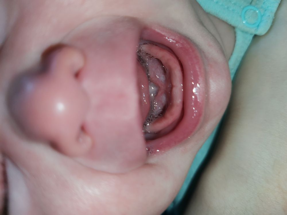 У дочки, при такой картине, через неделю вылез первый зубик и через 4дня второй.
