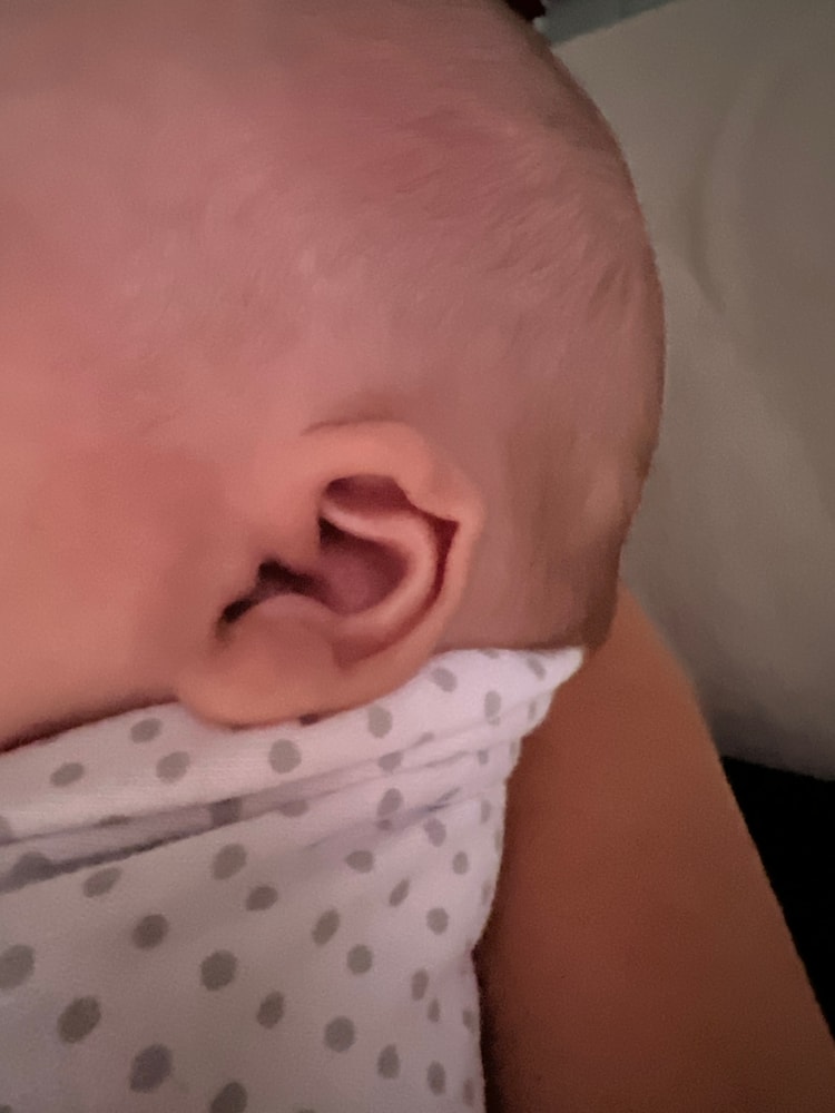 Обычное ушко) у младшего тоже были как нерасправленные такие пельмешки) сейчас красивые ровные ушки. Не переживайте, всё у вас хорошо