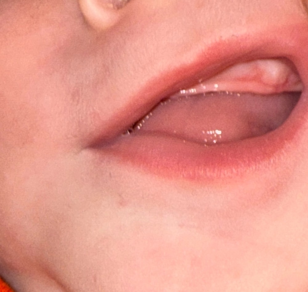 У нас на десне со стороны клыка был белый маленький твёрдый шарик , размером с бисер. Думала зуб, врач сказала , что это киста , у малышей бывает , скоро рассосется . Все прошло за неделю , может две.