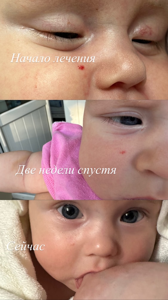 Следом после этого,я связалась по онлайн консультации с врачом из центра «Гемангиома» в Москве и мне дали добро на примочки,сказали если не будет эффективно,то уже приехать к ним и пробовать медикаментозную схему лечения. И еще важный момент,в случае множественных гемангиом,как у нас, необходимо сделать узи печени,чтобы исключить наличие гемангиомы на ней. Мы проверили, к счастью,у нас ее там нет.