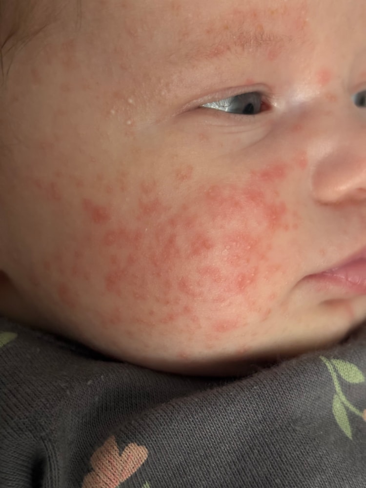 Высыпания на кожеВ начале третьей недели появились небольшие прыщи с гнойниками, быстро начали расползаться по всему лицу и голове, сейчас уже на грудной клетке немного есть. На остальном теле нету. Приходила педиатр сказала акне, максимум ромашкой протереть. Переживаю что все таки аллергия или что нибудь другое. Кто сталкивался подскажите ваше мнение…