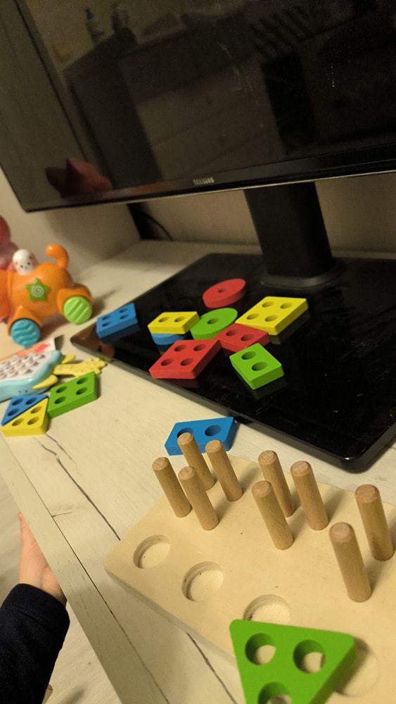 Не вешайте игрушки перед глазами ребенка, и по края кроватки.