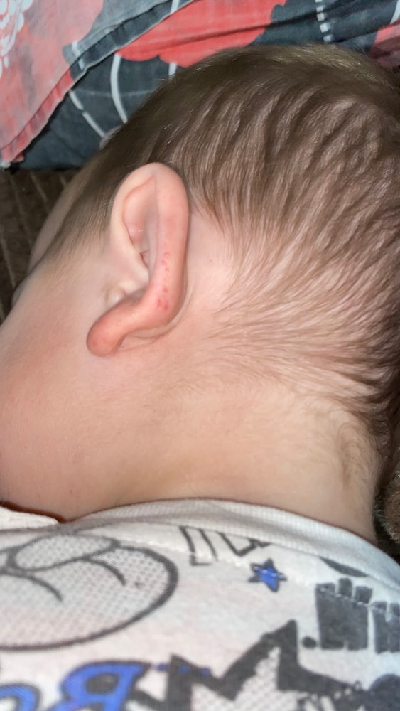 так же есть на ушах,но она похоже на мини засос или веснушки