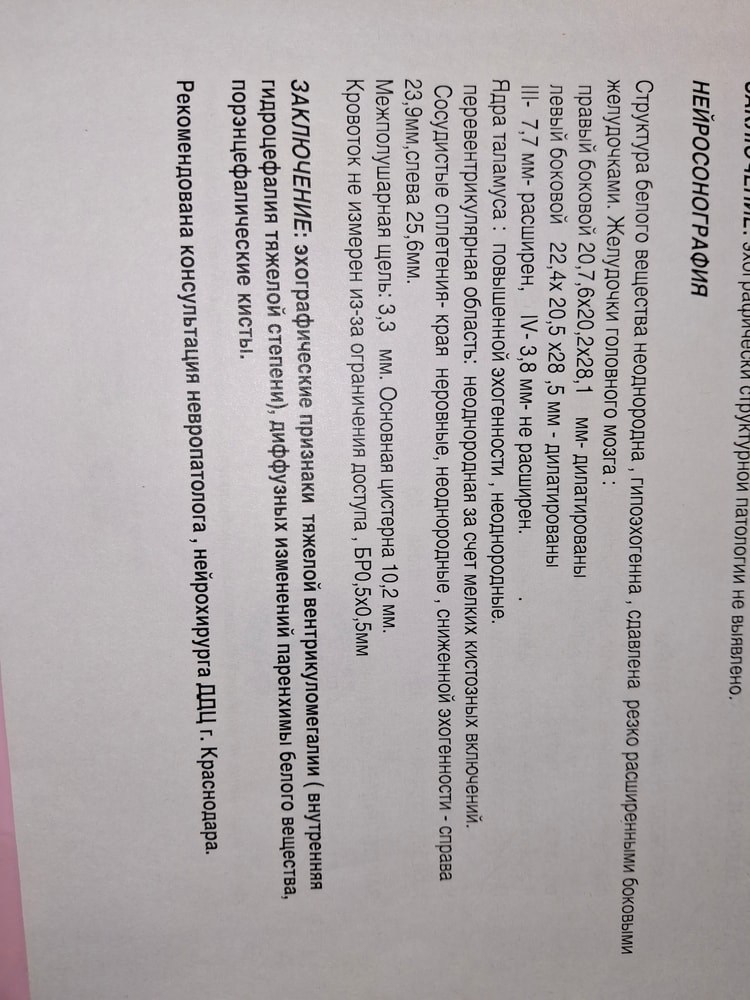 Темная Лошадка, я просто не понимаю почему наш невролог не нвзначает вообще ни чего,только повтор узи в 6месяцев,жидкость ведь увеличилась ,просто бездействовать? Записали к нейрохирургам в край и неврологу аж на 9декабря и то потому что я настояла