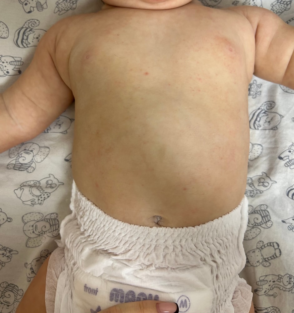 Ребенку 6 месяцев, стал активно ползать по всей квартире, вечером каждый день теперь обсыпает живот, с утра остаются только одни и те же подсохшие, которые самые крупные