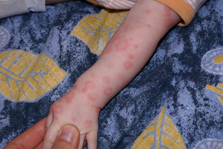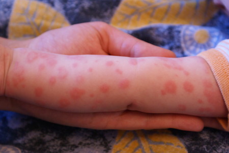 ой-ёй-ёй! Бедная малявка! Видимо реакция на лекарстро или последствия гриппа. Надеюсь, что не серьёзно это! Желаю скорейшего выздоравления!