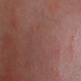 У нас похожее было в 3 мес. Так и не поняли на что. Как раз было на животе, груди, спине и на ручках. На голове и ногах неть. Было подозрение: на баранину (которую я поела за день), либо просто потничка (после массажа потели). Через день прошло (после купания в обычной воде).