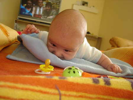 )))))) ой у нас целый день такая борьба! Тока у нас возраст другой мы сами преворачиваемся.... но надо нам ползти! Орём и плачим)))
