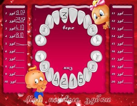 Итог всему: у нас уже 5 зубов, 4 снизу и только 1 сверху
