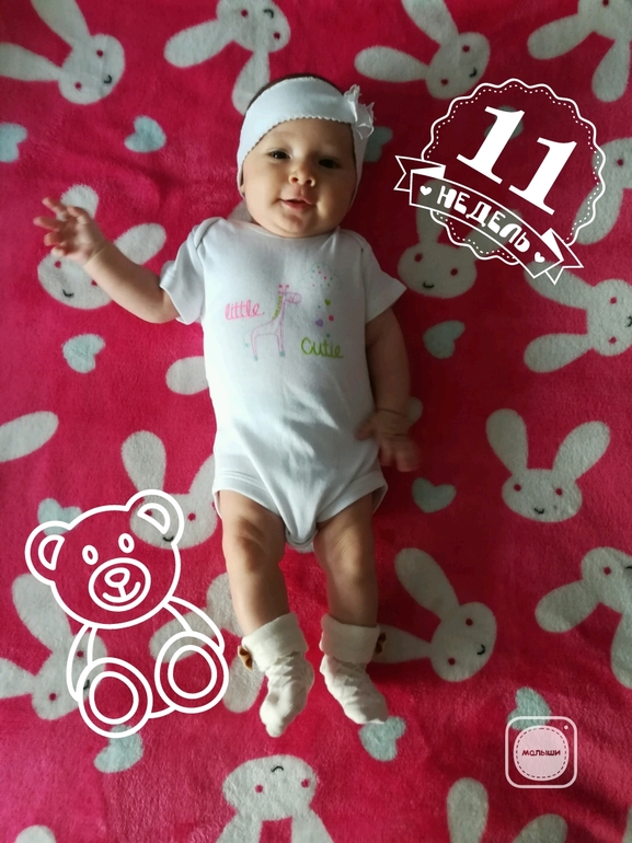 Рост и вес пока не знаем. Что умеем: Болтает, смеется, переворачивается на живот, тянется за игрушками,ползает на животе по дивану. Поднимает тело на вытянутых руках лежа на животе,поднимает попу вверх. Поднимает голову и плеч...