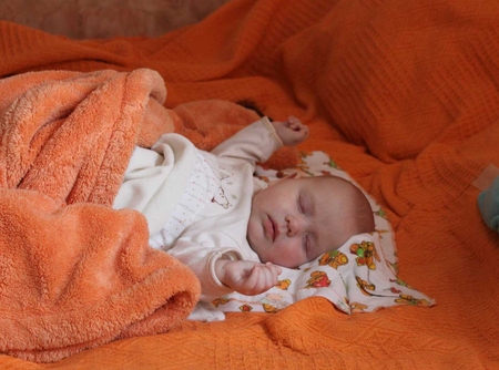 У нас распределение кровати такое:2/3 отводится Марьяше,1/3 - папе,а я валяюсь у них в ногах.Утром встаю вся скрученая!По-другому она спать не соглашается!