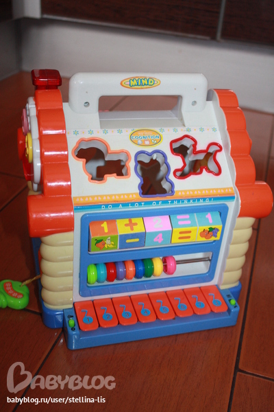 а так я считаю очень хорошей игрушкой вот этот вот домик, это сортер, когда кладешь туда животных, они звуки произносят, когда нажимаешь на пианино, издает и звуки и мелодии! Всем рекомендую!