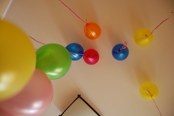 Сегодня у нас дома папиными стараниями появились воздушные шары. Антон несколько штук привязал к кроватке, еще несколько - к погремушке, а оставшиеся оставил болтаться под потолком. Костя увлеченно управлял "погремушечными", папа спокойно гладил пеленки.
