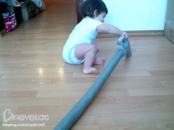 мой маська уже помогает.. и с выключенным пылесосом играть не хочет, только когда включен:-) а еще сегодня звала нашу кису покушать - зову ее сюзи кис кис кис идем сюда кися... а он за мной- ссьи, сись, сися и улыбаеться .. так радуется если что то сможет повторить или сделать сам.