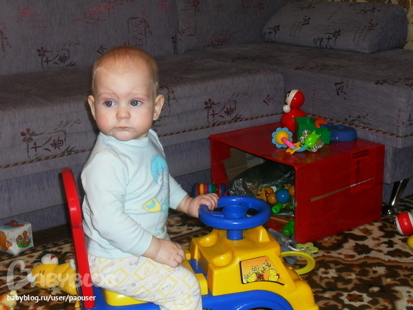 Рост, весНу вот, нам 8 месяцев (было 27 февраля). Вес-9250, рост-72, активно ползаем, встаем, ходим с опорой, пытается стоять...но всего 2-4 сек, боязно ему. Очень много лялякаем, но пока ничего не понятно (ля-ля, дя-дя, ма-ма, па-па, да и т.д.). Визжать и рычать стали меньше (больше в тему стал это делать), на горшок васаживаем днем, иногда удачно, иногда нет