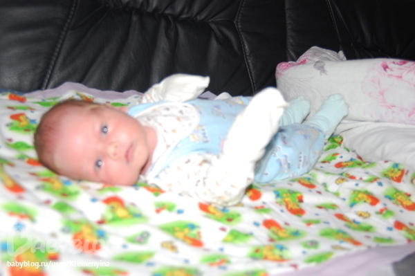 Вот и исполнился месяц со дня рождения нашего сыночка. А такое ощущение что только вчера родила. Что мы имеем на сегодняшний день: Мы полностью на ГВ Газики и колики нас почти не мучают (ттт!) Кушаем каждые 3 часа. Днем режим не совсем точный, бывают сбои, можем и через час покушать. Ночью регулярно просыпаемся в 01:00, 04:00, 07:00. Кушаем и сразу баиньки, можем покапризничать из за того что пустышку потеряли, но ничего, ведь мама вставит ее на место. Гуляем каждый день, по 40 минут, очень нравится, как правило после прогулки всегда спим. Купаться тоже очень любим, не любим то что рано или поздно купание прекращается - визгу на весь дом! Можем переворачиваться с животика на бок, головку уже увереннее держим лежа на животике. Завтра идем в поликлинику первый раз! Я кушаю практически все, за исключением цитрусового, шоколада, кофе и прочих алергенов. Вернулась в добеременный вес, с мужем отношения отличные, в сыночке он души ни чает. В общем все ок (ттт). Желаю здоровья деткам и мамочкам!Вот такие мы сейчас!