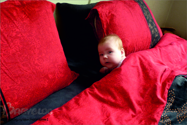 А одеяло сползло, а Аринка оказывается между мужем и мной под одеялом с головой укрыта (видимо муж закутывался и закинул ее одеялом).