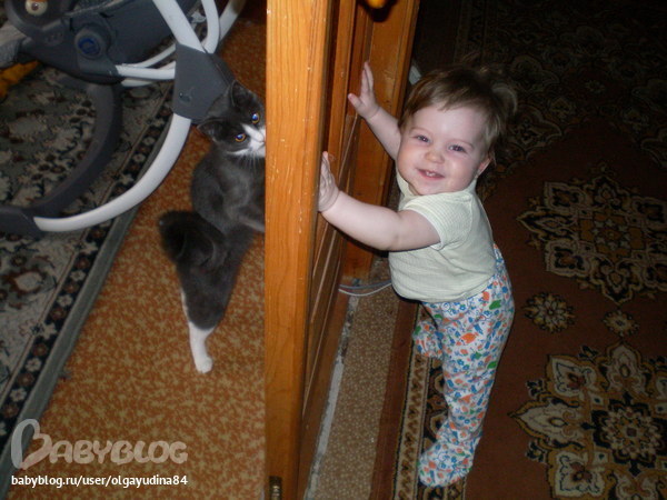 За месяц особо ничему не научились,только ходить за ручки,пока топаем только дома,но скоро попробуем и по асфальту пошагать. Научились махать"Пока,пока",много говорим разных звуков(няня,тата,ав-ав,ну,и мамкаем вовсю:)). Ещё любим в догонялки играть. Стала приучать к горшку,рановато,конечно,но по-большому туда ходим,(знаю,когда он это делает по времени и стараемся в горшок все дела сделать).Кушать начали мясо,но что-то не пошло оно,сделала перерыв,вчера попробовала снова,скушал вместе с овощами,посмотрим что будет дальше. В 8,5месяцев начали кушать творожок и биолакт,сначала было бее,а потом полюбилось нам это дело. Весим мы 10200(пухляки:)),рост пока не знаем. Имеем 8зубов,иногда маму за титю кусаем,очень больно,а если ругаю-плачет. Ещё из плохого:первый раз заболели-простуда,но быстро вылечились,и спим очень плохо,невролог сказала,что можно глицина подавать и отучать от постоянных ночных кормлений(едим от 3 до 5-6-7раз за ночь),но я пока не решаюсь,так как успокаивается он только у сиси(ни водичка не помогает,ни укачивания),но в целом с дитем всё хорошо,сказала невролог. Вот такие дела. И несколько фоток: