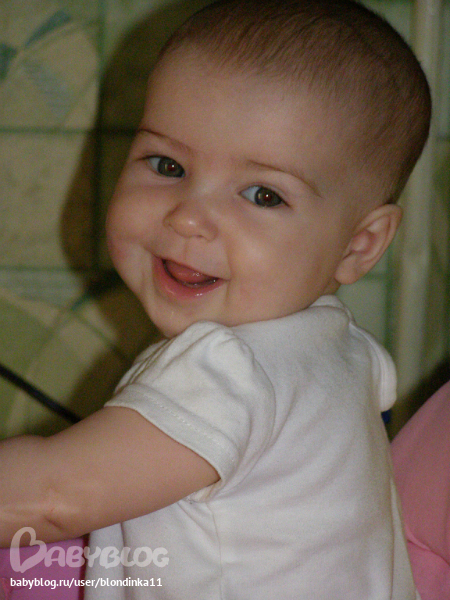 ХвастаемсяВот и исполнилось нашей Даше 8 месяцев. Очень быстро время бежит... Итак, что можем и умеем:стоим уже по минуты 3-4, сидим и встаем из положения сидя, ползаем очень быстро, встаем "рачком", ходим по дивану, в кроватке, ну и от дивана к кроватке ( расстояние см 30),думаю, скоро побежим)))) Говорим да-да, та-та, не, ни , и много много слов , которые мы не понимаем))) Машем привет-пока, крутим головой нет-нет. Очень любим деток, целуем их, и хватаем за лицо, а забыла , Дашино коронное "УУУУУ" , как волчок встает на коленки и укает, а ну и язык- с первых дней "на улице", особенно когда чем-то занята)) Зубов нет, нижние набухли давно, один сегодня начал прочикиваться. Кушаем много чего, особенно любит грушу, омлетик, соки без мякоти. Знаем горшок, памперсы на ночь и на прогулку. Уже за несколько теплых деньков успело загореть личико))) Таак, вес примерно кг 8, а рост см 65-66, мелкие мы))не ходили в поликлиннику уже 2 мес. Люблю свою малышку!!!! с каждым днем что-то новенькое))) ну и фото: