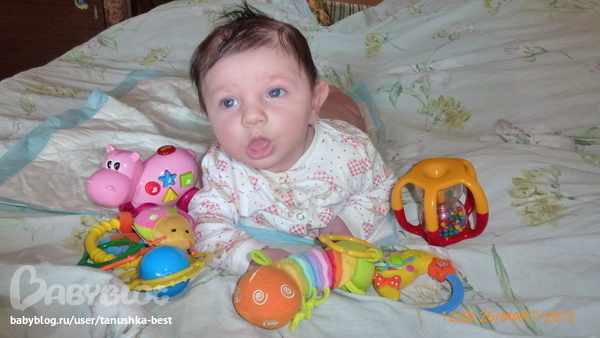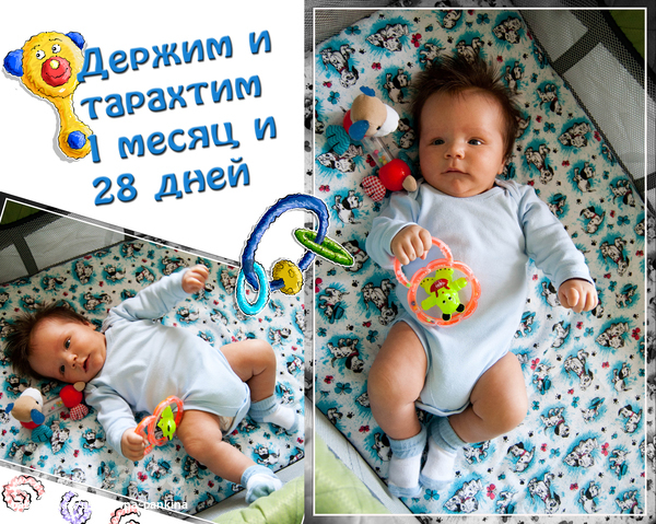 Вот такое маленькое достижение) Машет активно, иногда попадает по лбу))) смеется) Такой забавный)