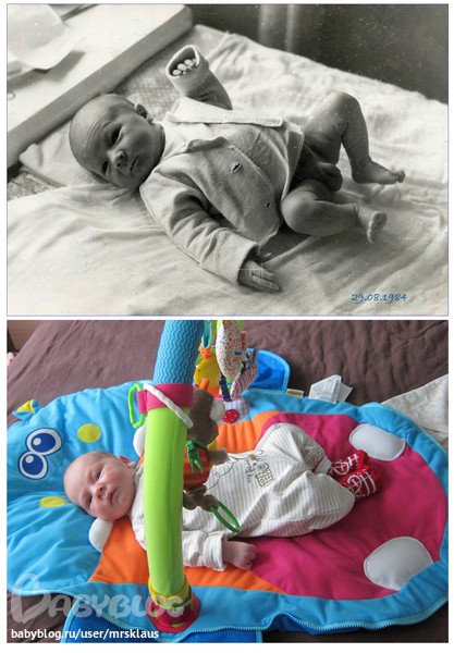 Сверху двухнедельный папа, снизу трехнедельный сын...