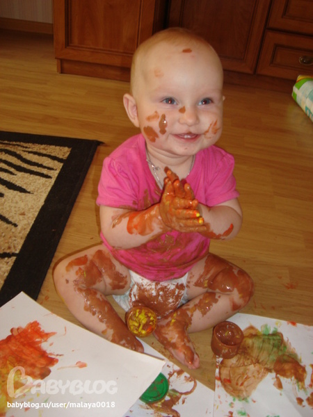 Мама дорогая! Фотка где малышка вся в краске - аховая!!! Как потом? Отмыли? И отмылись? Доче наверно жутко понравилось?