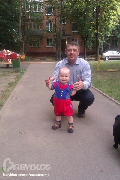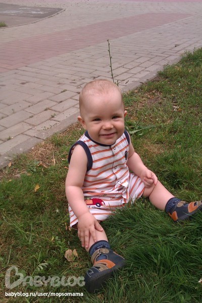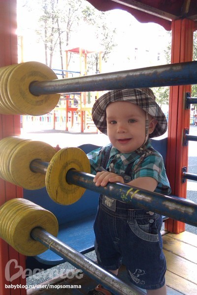 Что мы имеем к году:вес 10800,рост 78 см. За последний месяц научился уверенно ходить,залезать на небольшую лавочку на коленки и пятясь слезать.Наконец то научились махать пока пока,а вот в ладушки так и не играет,ну и хрен с ними.Пирамидку собираем по прежнему в произвольном порядке,стали интересовать вкладыши и пазлы,сидит такой серьезый и пытается туда чего то вставить,ну естественно пока не очень понимает как,любит все кидать в сортер-горшочек,катает машинку,но особо пока ими не интересуется,нравится катать мячик.Много болтает по своему,а из слов по прежнему только баба,мама,папа и то сейчас стал очень редко их говорить,все больше лопочет чего то.