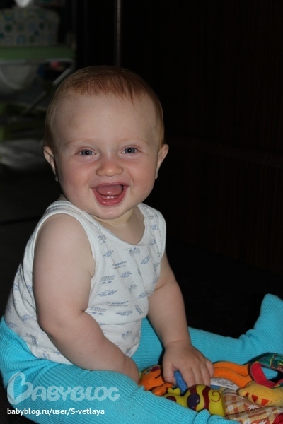 ХвастаемсяИз достижений- Витек лопочет, умеет ползать и вставать держась за все что под руку попадется, холит по манежу, бегает в бегунках, сидит уверенно, но вот из положения лежа никак не научится садится, только из стоя. Хохочет во всю, взглядом может показать где мама и папа, машет пока ручкой когда ему машут. Имеем 2 зуба нижних, которые дались нам не очень легко, ждем верхних. Кушает смесь на ночь и ночью, а днем варю ему каши, овощные и мясные пюре, делаю фруктовые пюре, кушаем ягодки, огурцы, морковь, печенки. Ну и из за такого аппетита итог- Вес 10500, рост 74 см))) Ну а вот и мы))