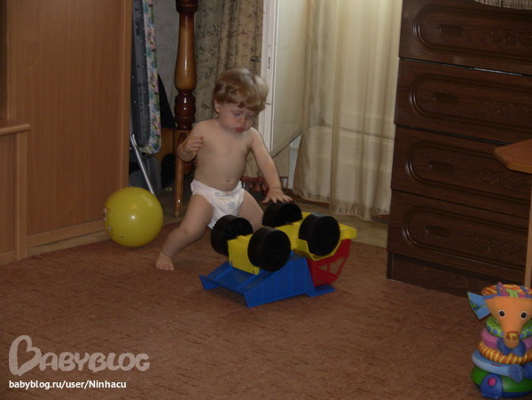 Ходить начал еще в девять с копейками, теперь бегает - не догонишь. На прогулках я могу посидеть на лавочке, пока сын носится по площадке. Дома и вовсе бегает.