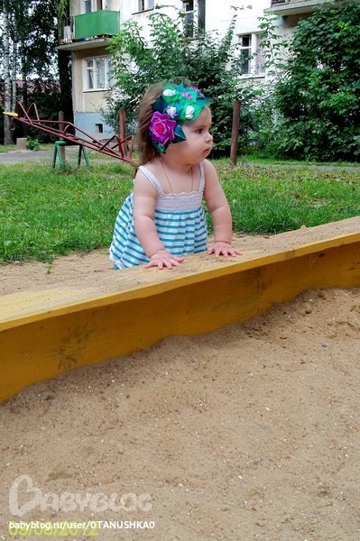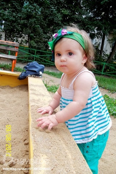 Мы при каждом гулянии обязательно голубей кормим. Очень любит на них смотреть. С месяц как играем в песочнице, ползает, ковыряется в нем. :) Плюс беру с собой сенсорную коробочку с крупами и играемся с ними. (Дома с ними очень не удобно)