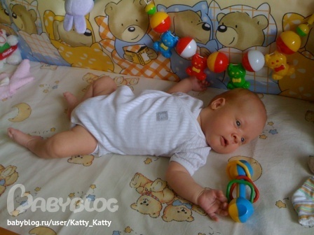 - узнает меня, папу и бабушку, начинает улыбаться и дрыгать ручками и ножками;