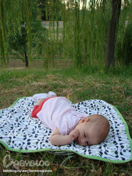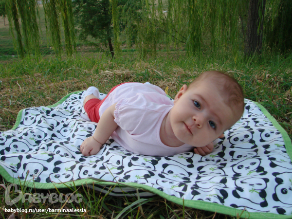 - на бок переворачиваемся давно, а вот на животик или на спинку все никак, все рука ей мешает. Думаю может на пол перебазироваться, может мягко на кроватке кувыркаться ей.