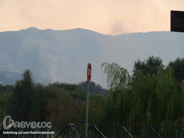 Все небо затянуло дымом, и из за ветра все разносит по сторонам, уже на склонах возгорания есть (как раз где огонь видно). Сейчас сижу дома пишу и слышу как скорые и пожарки сигналят, уже не первый час...видимо что-то серьезное... а еще такая ж... окна все закрыты и жалюзи опустила, а гарь все равно проходит в квартиру...как ночью то спать будем, мы ведь всегда со всеми открытыми окнами спим. Одно радует, что на один нос ночью будет меньше! Папу проводили на рыбалку!!! Живя столько лет в Италии он ни разу не был на морской рыбалке, вечно чалился в горах на озере, привезет какого нибудь карпа вонючего...вонючий, что запах тины есть, как бы ты его не крутила. Вот надеюсь утром с морской рыбешкой его встречу....заказала Орату...посмотрим))) он надеется на осминога, но я его точно разделывать не буду...боюсь))))