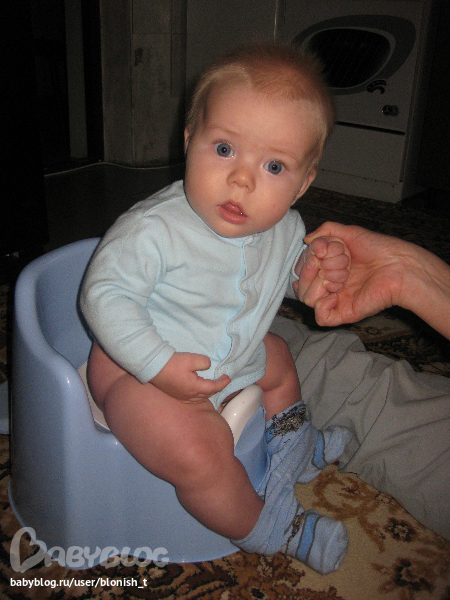 P.s. Киря повторил мой подвиг, я тоже в 5 месяцев на горшок села... вид примерно такой же)))